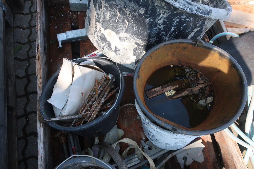 Palle med div. Spande samt jern