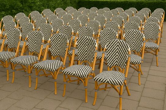 Det karakteristiske flettemønster giver stolene et eksklusivt og håndlavet udtryk, mens materialevalget sikrer både komfort og lang holdbarhed. Stolene er stabelbare, hvilket gør dem ideelle til både kommerciel brug og hjemmemiljøer, hvor opbevaring og fleksibilitet er vigtigt.