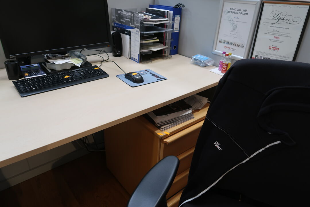 El. hæve/sænke skrivebord samt kontorstol