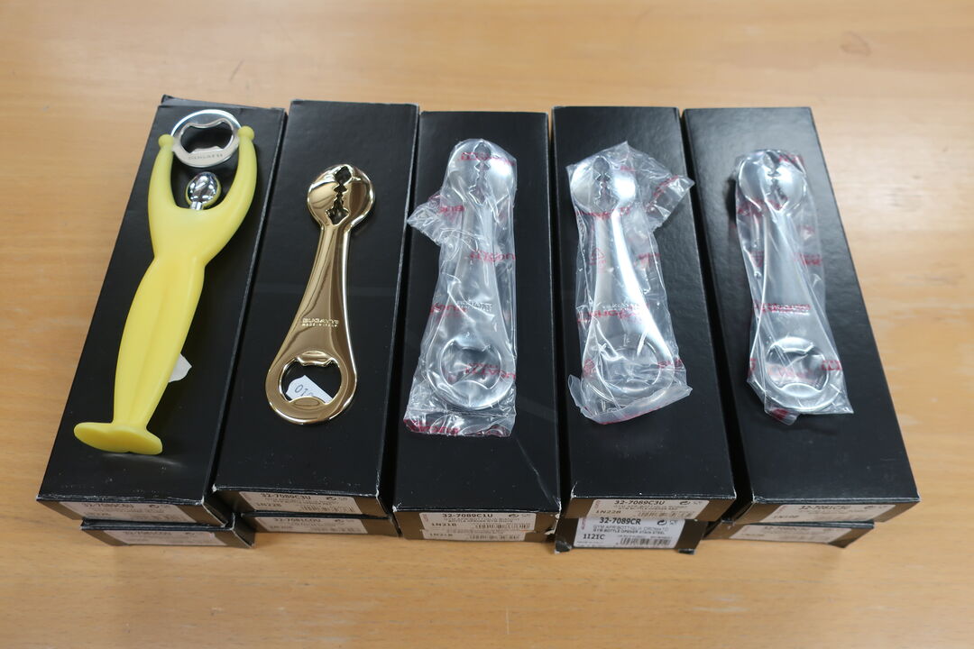 9 stk. BUGATTI flaskeåbner ass. Farver