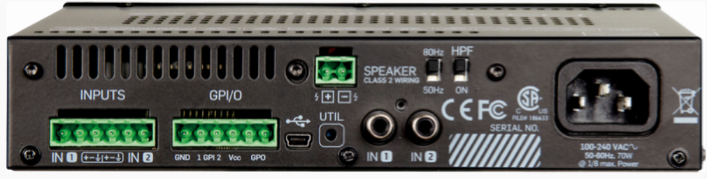 Kompakt Mono 60 W forstærker til højimpedans 70 V installationsapplikationer LUCIA 60/1-70 kombinerer nem installation med 60 W decentraliseret effekt i en kompakt, Energy Star-kompatibel forstærker. Lab Gruppens innovative LUCIA (Localized Utility Compact Intelligent Amplification) giver overlegen lydydelse og ekstraordinær fleksibilitet til en decentraliseret tilgang til design af AV-systemer. Strøm, processering, kontrol og I/O er bekvemt placeret præcis, hvor der er brug for dem. I mange AV-applikationer, der kræver konsekvent fremragende ydeevne, tilbyder LUCIA en logisk, omkostningseffektiv og skalerbar løsning, der ofte eliminerer komplikationerne og de ekstra udgifter ved et centraliseret udstyrsrum. LUCIA-forstærkerne har en digital, firmwarekontrolleret frontend kombineret med et robust, holdbart og meget effektivt Lab Gruppen-udgangstrin, som alt sammen gør LUCIA til den mest vellydende og pålidelige kompakte forstærker i sin kategori. LUCIA 60/1-70 er designet og konstrueret til hurtig installation og nem opsætning. Det medfølgende vægbeslag muliggør diskret placering på væggen (f.eks. bag videoskærme), men den ultrakompakte formfaktor gør det også nemt at placere den stort set hvor som helst - enten ved siden af en projektor eller integreret i en receptionsdisk, et podium, en talerstol eller et barområde. Alle indgangs- og udgangstilslutninger er på Euroblock-skrueterminaler (med parallelle ubalancerede RCA-stik), og niveauindstilling er tilgængelig på frontpanelets potentiometre. Avancerede kredsløb beskytter forstærkeren og de tilsluttede højttalere mod potentielle skader forårsaget af clipping, termisk overbelastning eller ekstrem lav netspænding.
