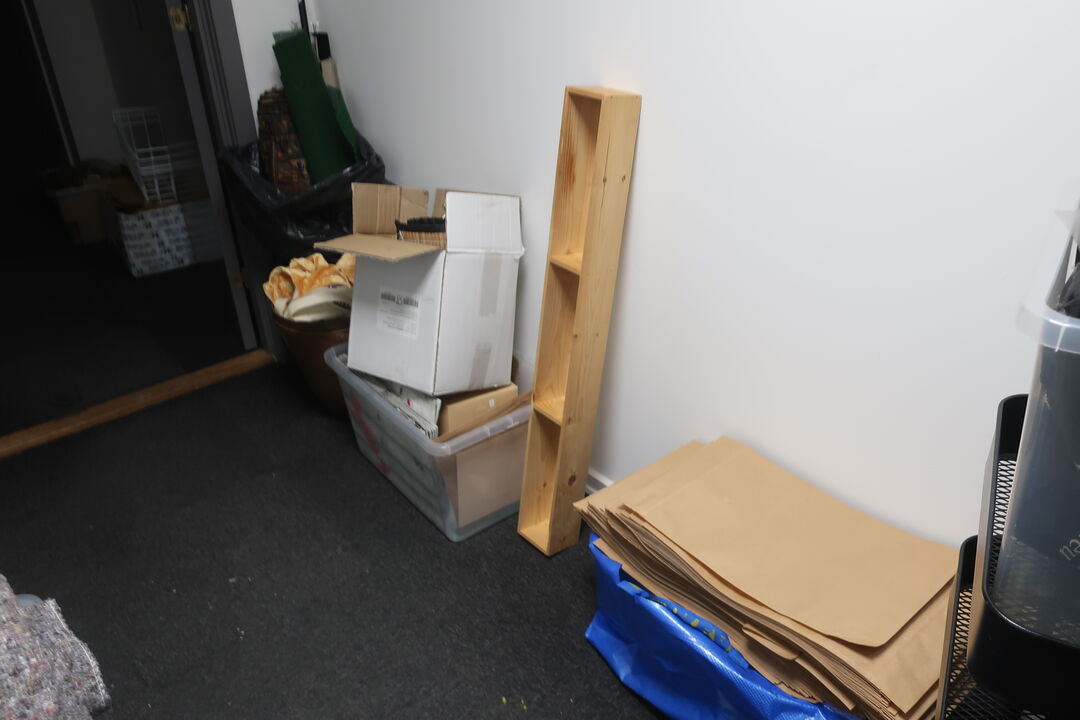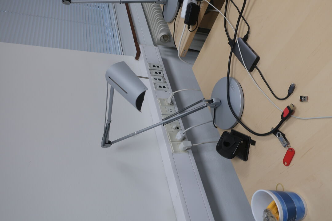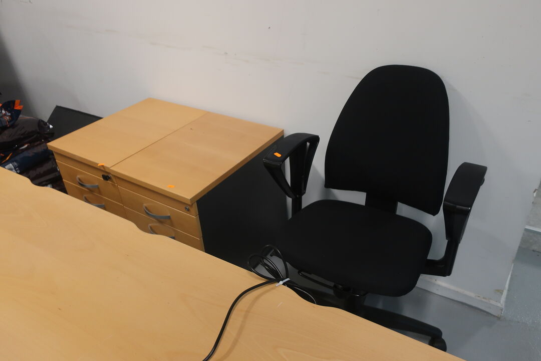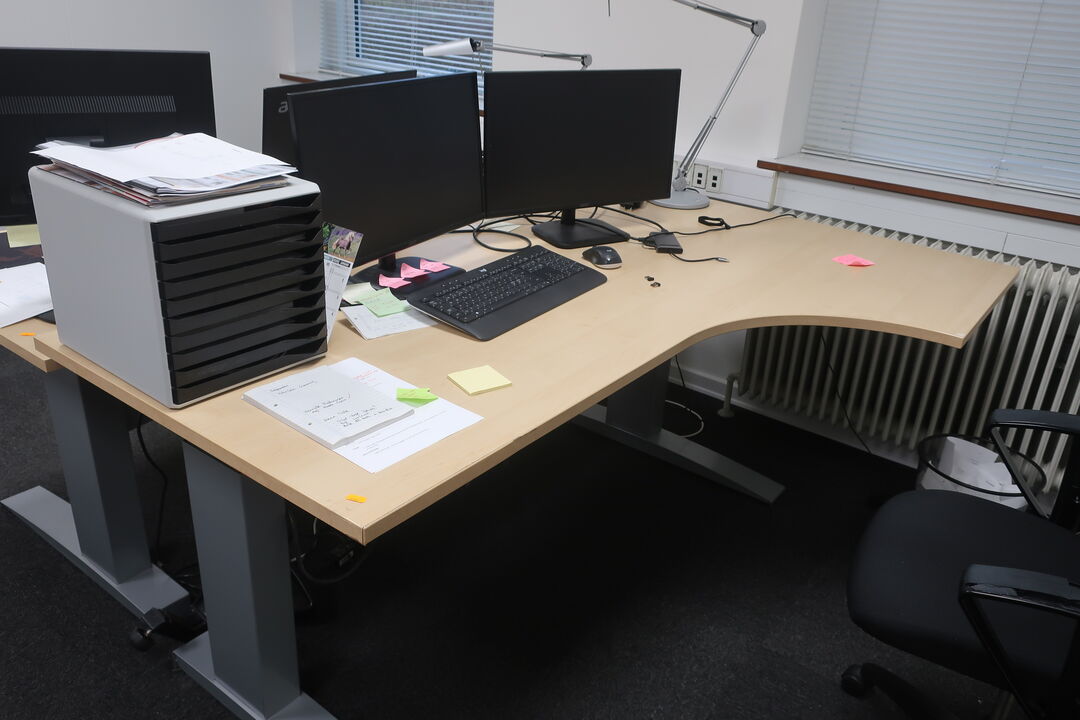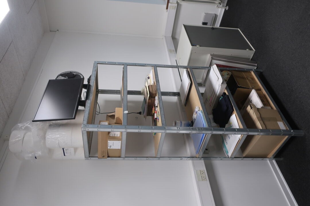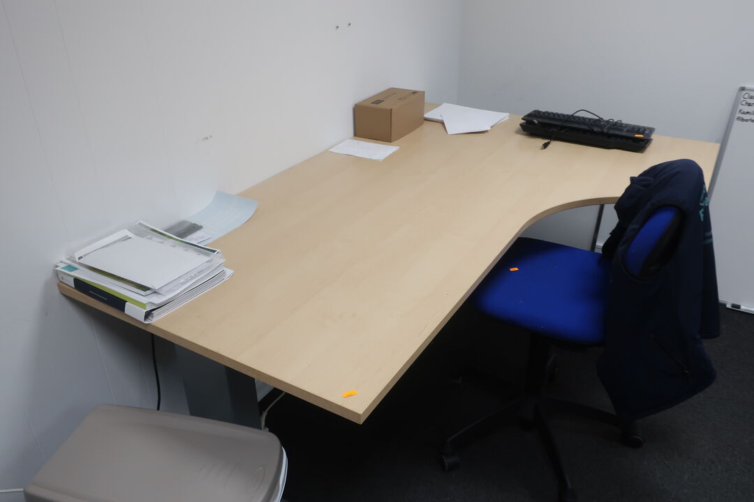 A7694 L571 - Bord, printer HP, labelprinter ZEBRA samt affaldsstativ