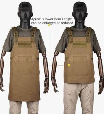 Arbejdsforklæde i slidstærkt kanvas med justerbar længde og to forskellige bæresystemer: H-stropper eller krydsstropper. Udstyret med i alt 12 rum i forskellige størrelser til effektiv opbevaring af værktøj og tilbehør.