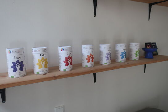 Reol med indhold te m.m.