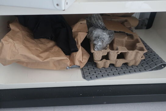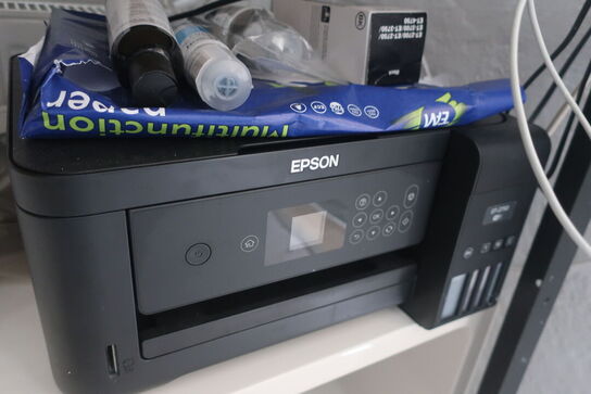 A6830 L38 - Reol med indhold printer / akku. Boremaskine m.m.