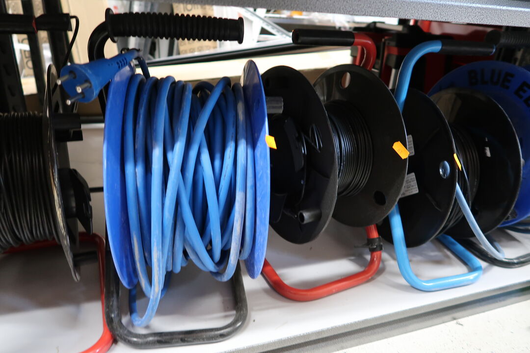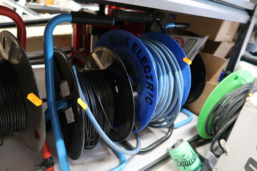 A7039 L63 - 3 stk. kabeltromler samt 3 stk. tromler med div. Ledninger