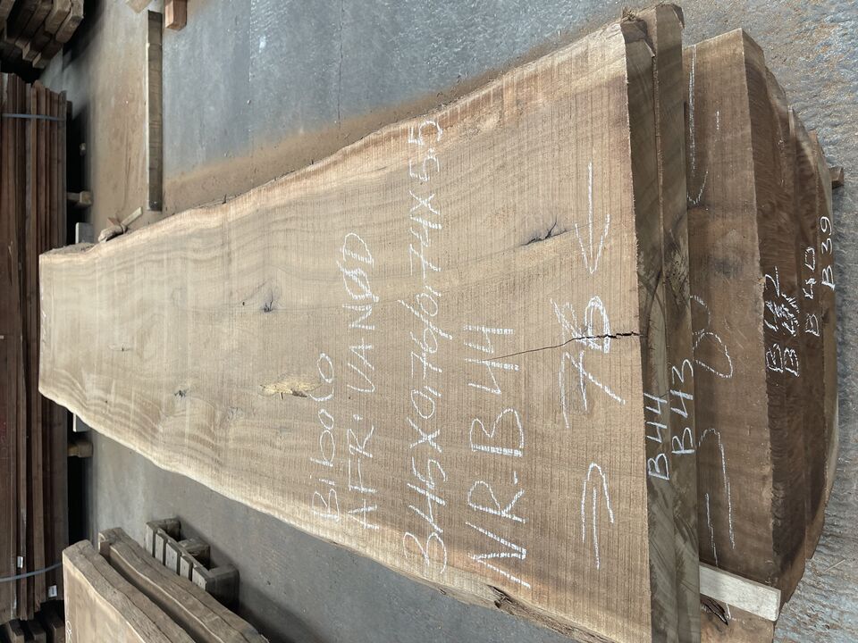A6826 L44B - Træplanke i BIBOLO (Afr. valnød) 3,45x0,76/0,74m - 5,5 cm tyk