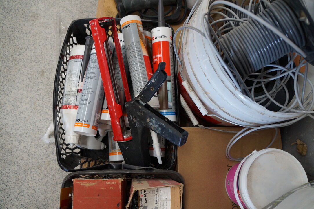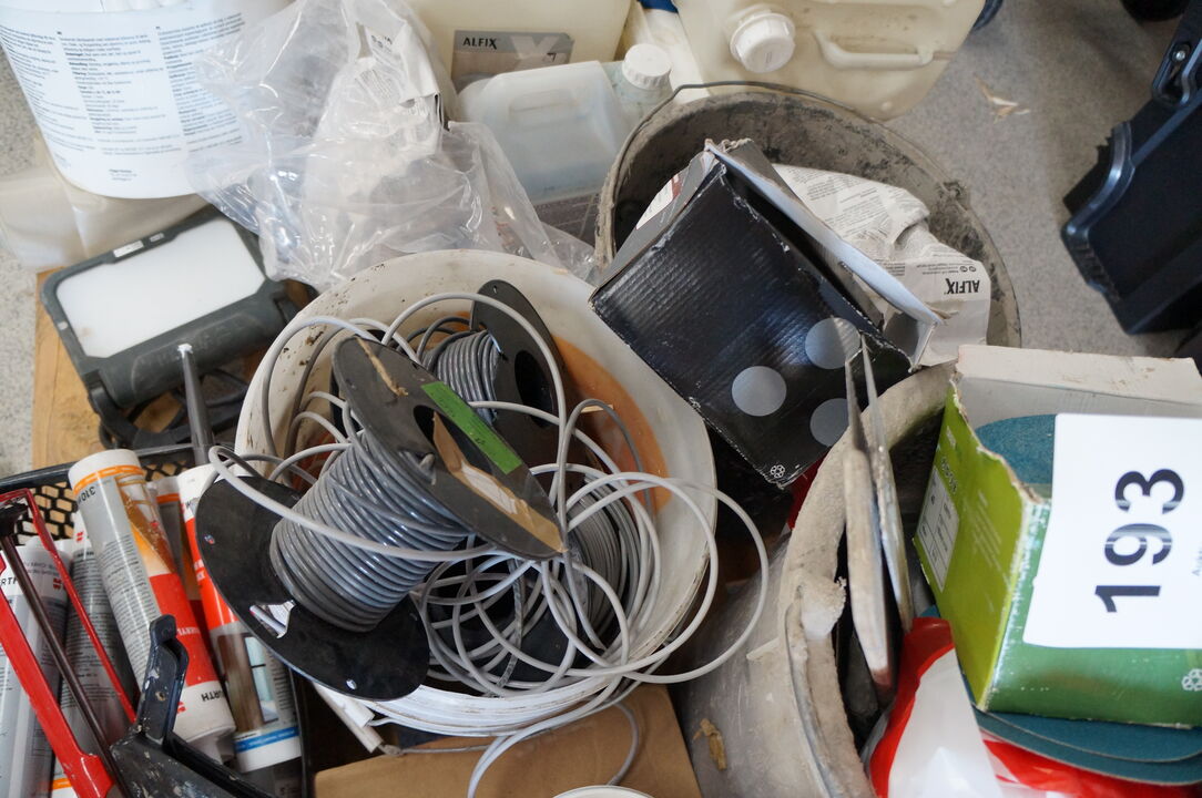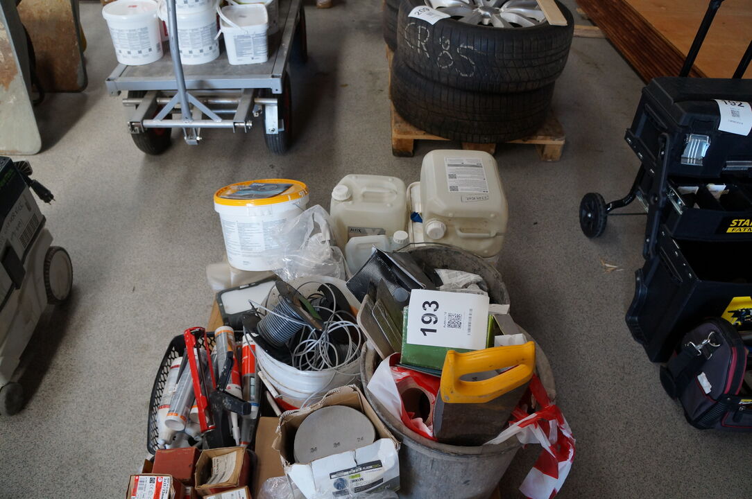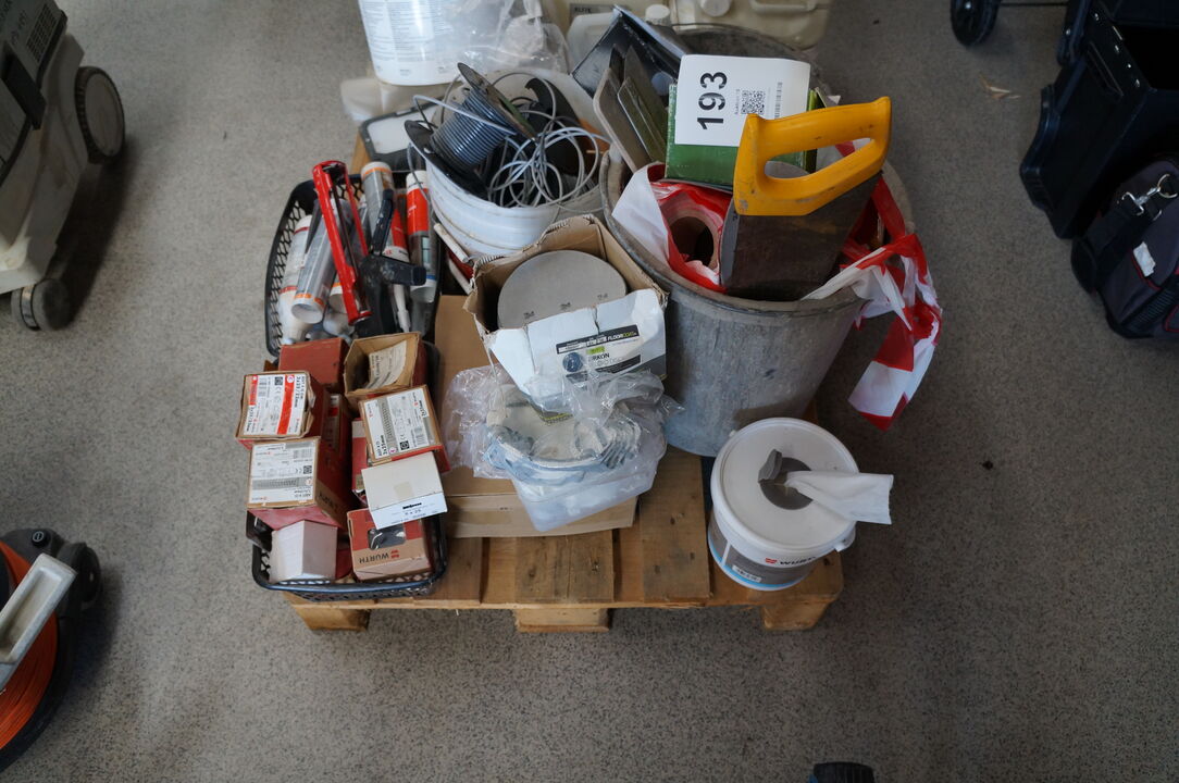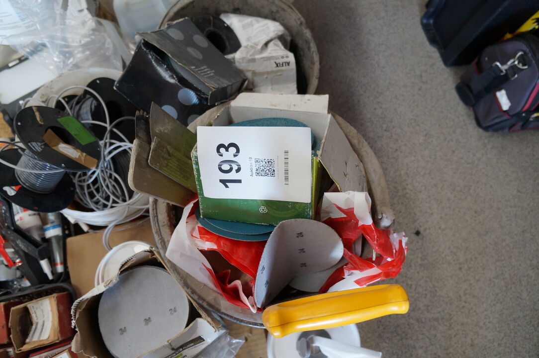 A6628 L193 - Palle med diverse slibeskiver, søm, m.v.